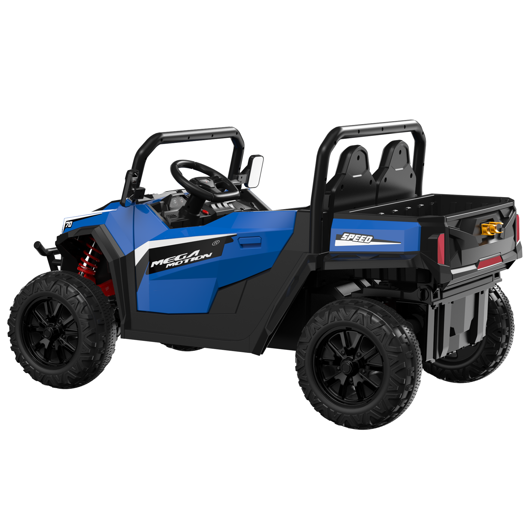 Надёжность и комфорт продуманы до мелочей: мощный двойной двигатель, яркие фары для вечерних прогулок и прочный ремень безопасности. Автомобиль развивает скорость до 7 км/ч и с лёгкостью выдерживает вес до 100 кг.